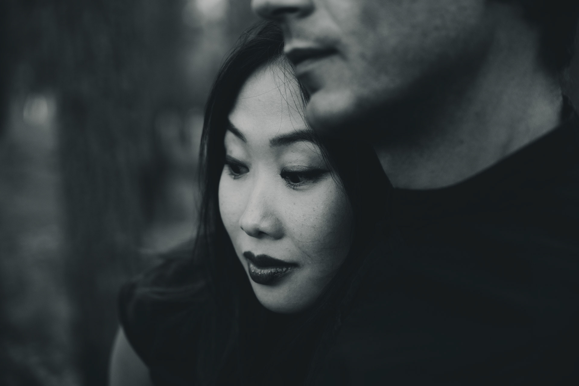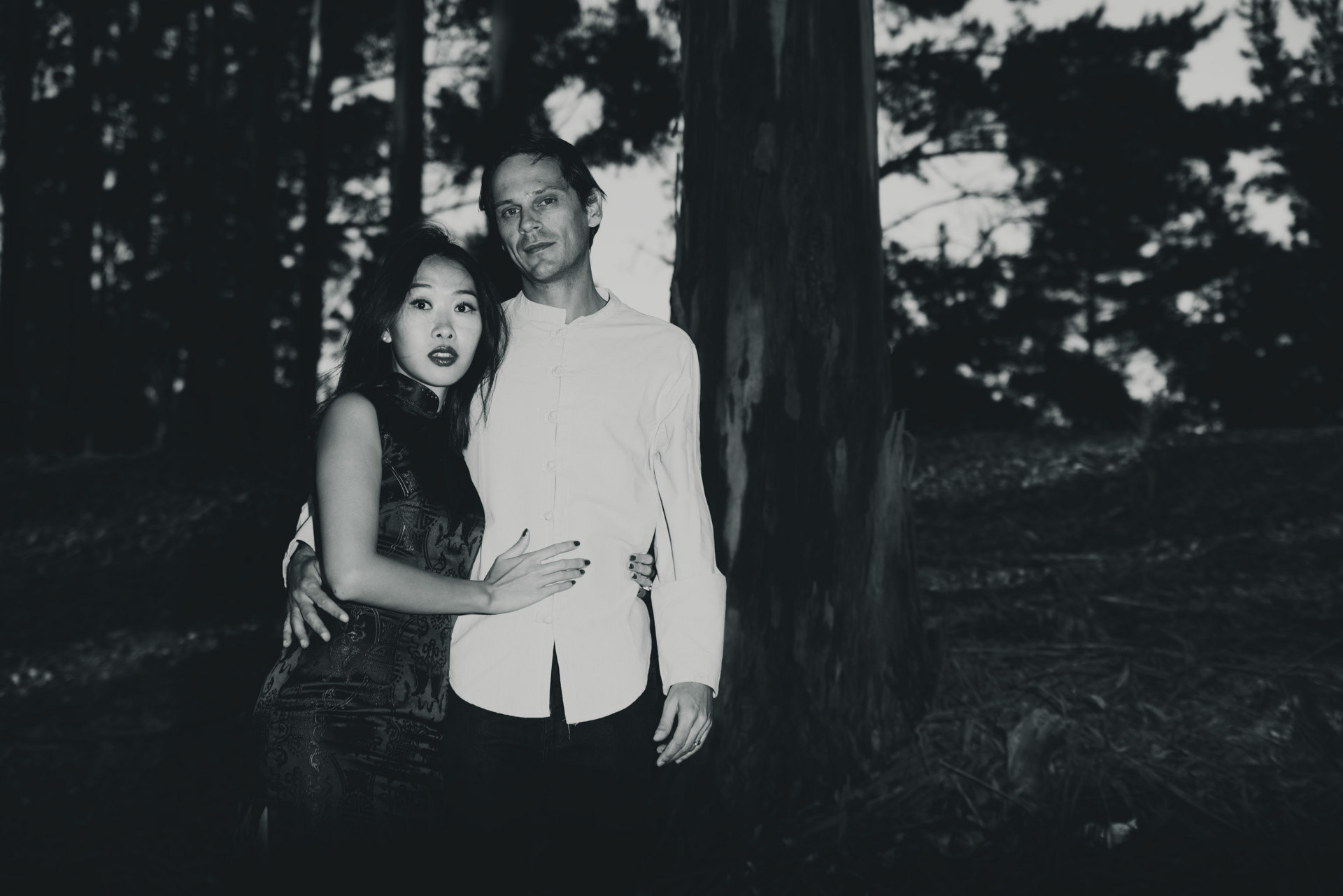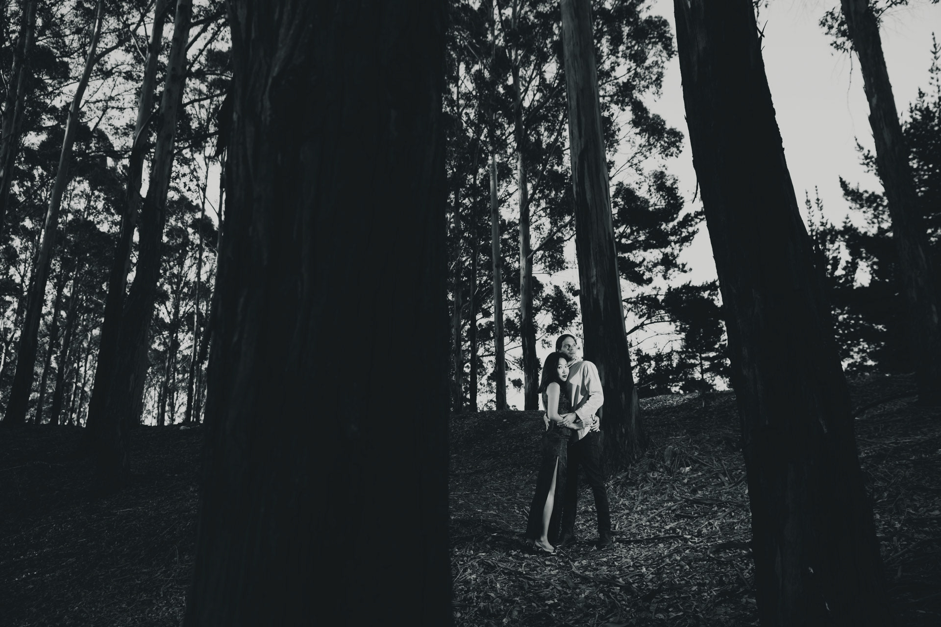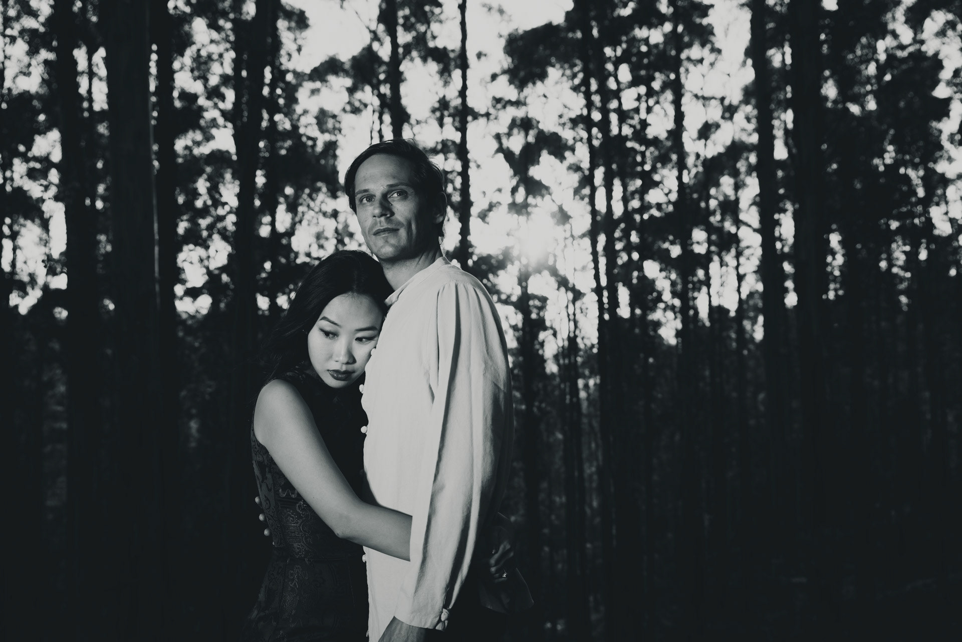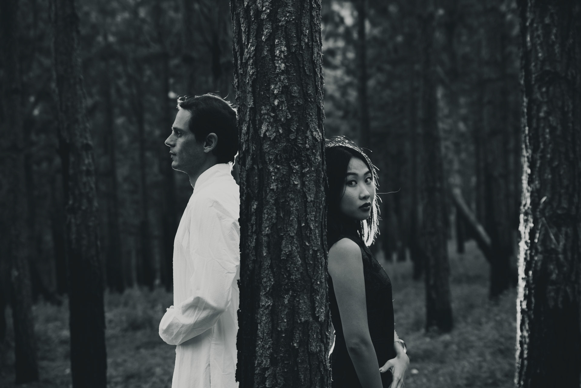 A kinda noir portrait shoot for this beautiful couple in the woods.